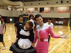最後にメイドさんと桃レンジャーで記念撮影