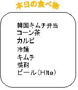 夕食は慶南大学のキム先生とカルビ・冷麺・焼酎・ビール。